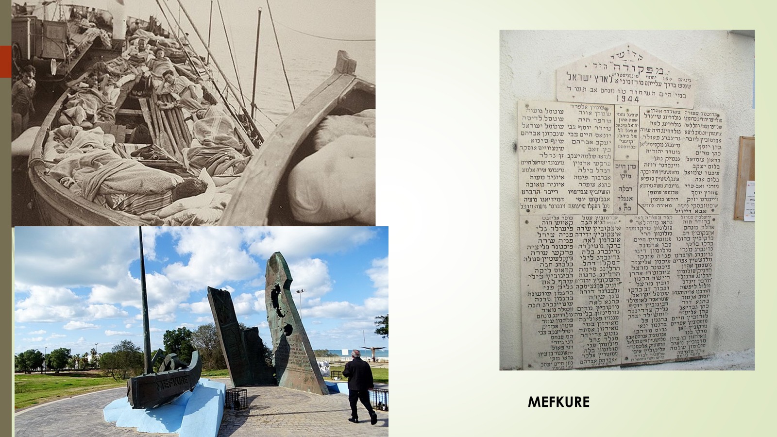 On August 3rd 1944, the three old merchant ships overcrowded with about 1000 Jewish refugees left Costanza: Morina with 308, Bülbül with 390, and Mefkure with 320 passengers. Armed ships of the Romanian Navy escorted the convoy from the harbour thru the mined areas.